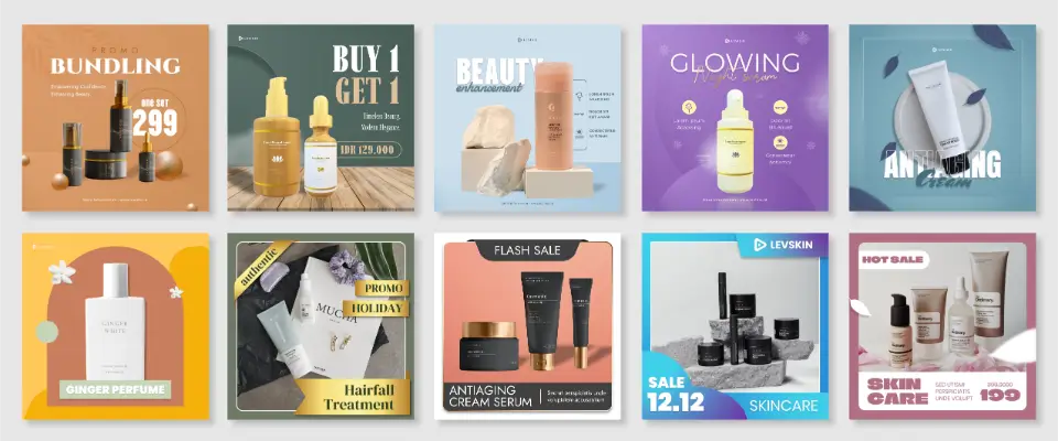 Create mockup banners for promotional and event needs, including mockups for cosmetic products.