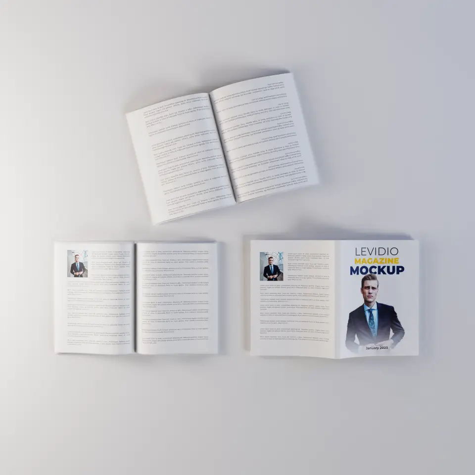 Create magazine and brochure mockups in various styles, available in both static and animated formats.